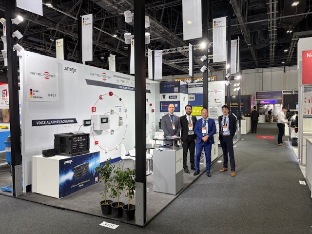 During the exhibition, we presented our comprehensive range of addressable fire detection solutions, including the DC3500 and DC520 control panels. Particular interest was shown in the DC3500, combined with our "Made in Germany" voice alarm system MOSES by simax, connected via serial communication, offering a high added value for large-scale and high-potential projects.
